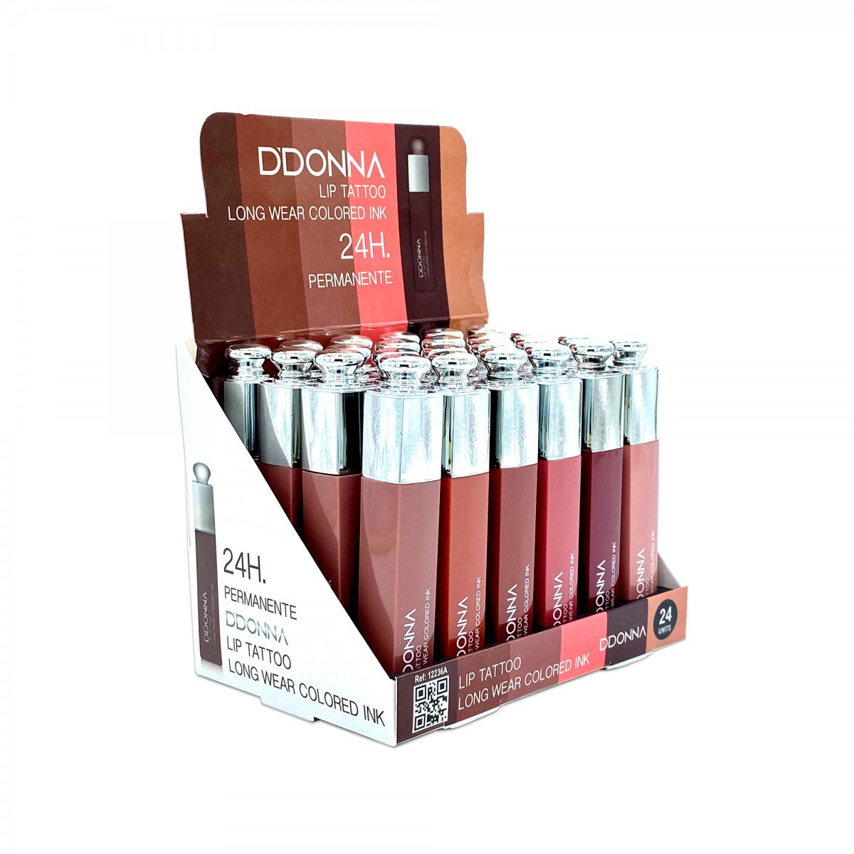 Tinte con color - Efecto Labios desnudos - Confort y duración extrema. LIP TATTOO LONG WEAR DDONNA, el primer tinte de labios con color de larga duración, ha venido a revolucionar nuestro ritual de maquillaje. Gracias a sus 24H. de duración, al confort de su fórmula y a su acabado, tan solo unos segundos después de la aplicación, el color se fusiona con los labios como un "tatuaje".