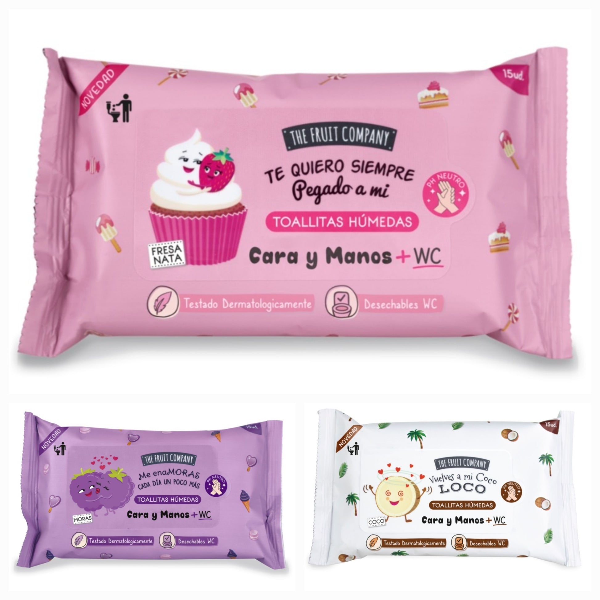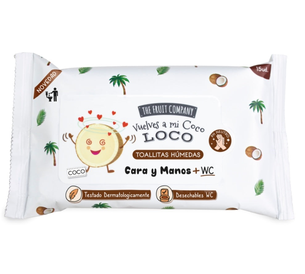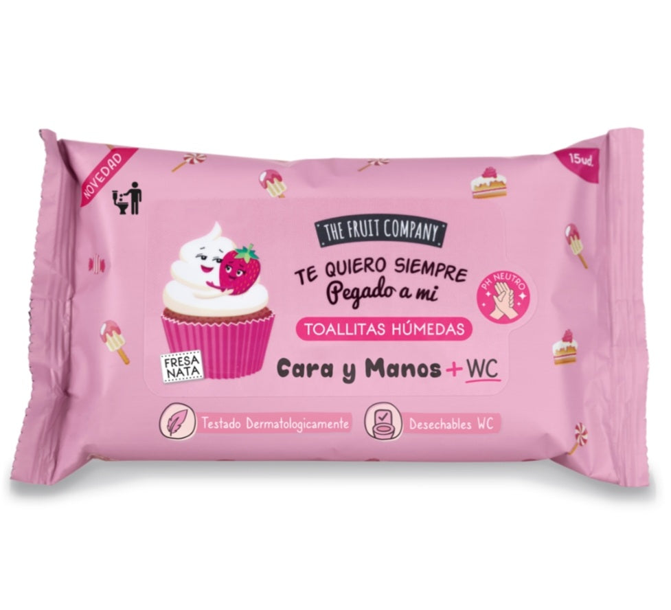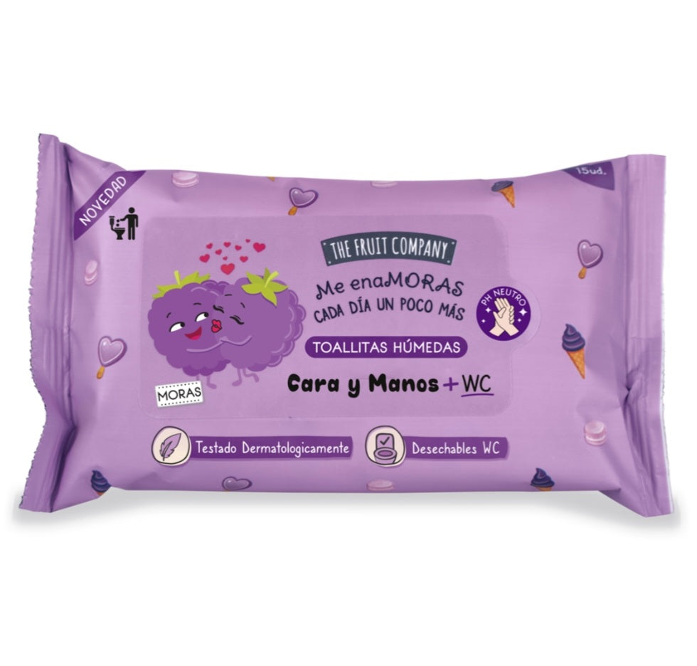 Paquete de 15 toallitasThe Fruit Company para cara, manos y WC.